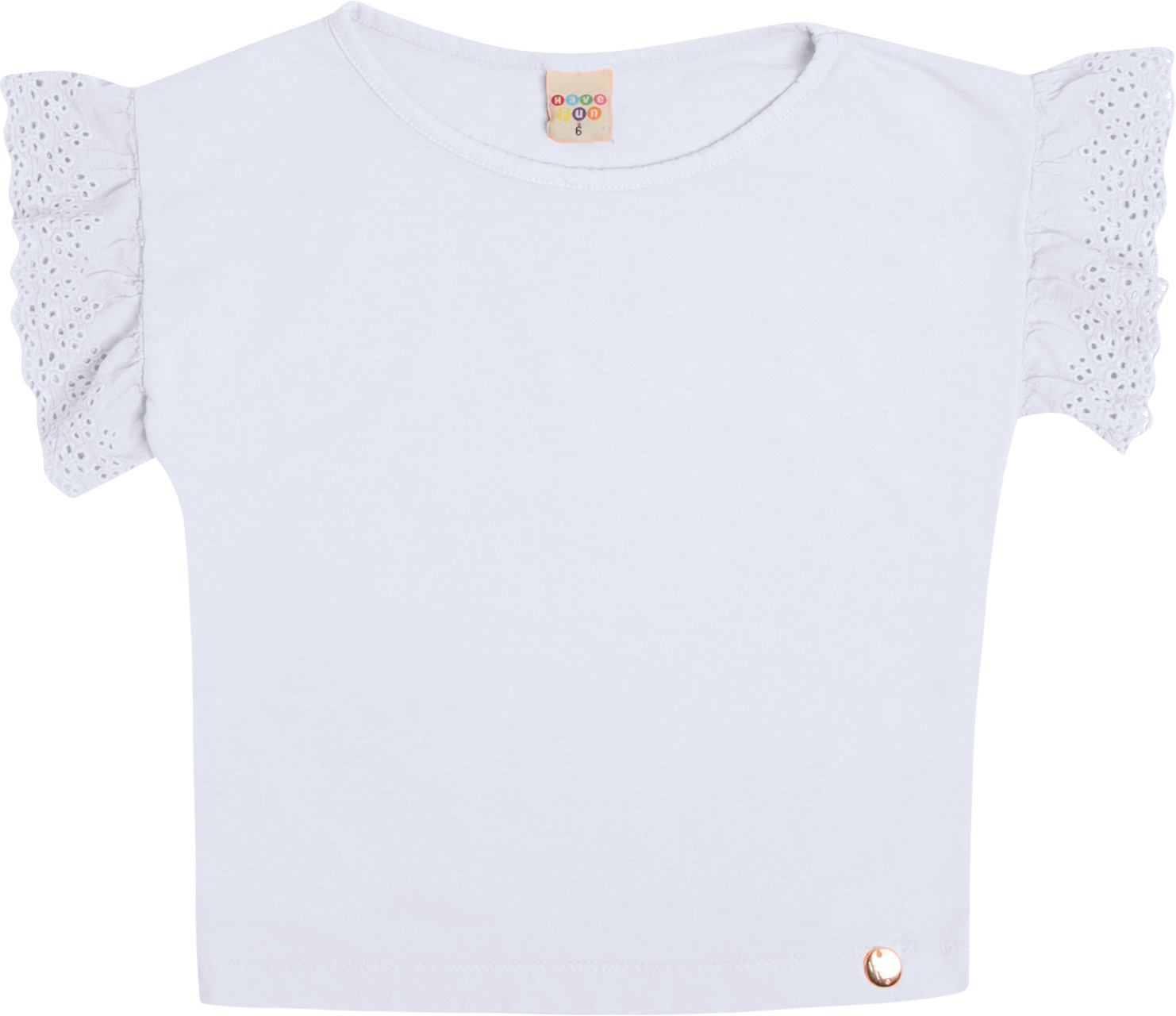 Mangas com babados em laise bordada, que adicionam charme e um toque romântico ao visual