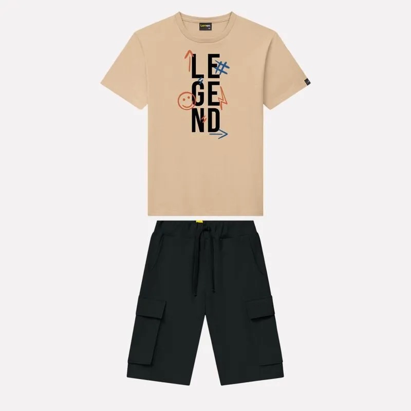 O Conjunto Lemon é composto por uma camiseta em meia malha e uma bermuda em