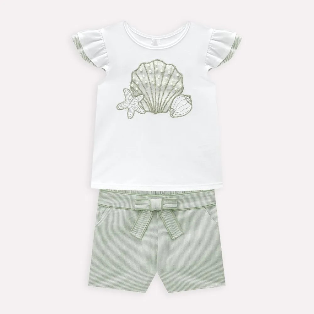 O conjunto infantil menina Milon é feito para deixar os dias das pequenas ainda mais mágicos, unindo delicadeza, conforto e um visual encantador inspirado na beleza das conchas e pérolas do oceano. 🐚✨