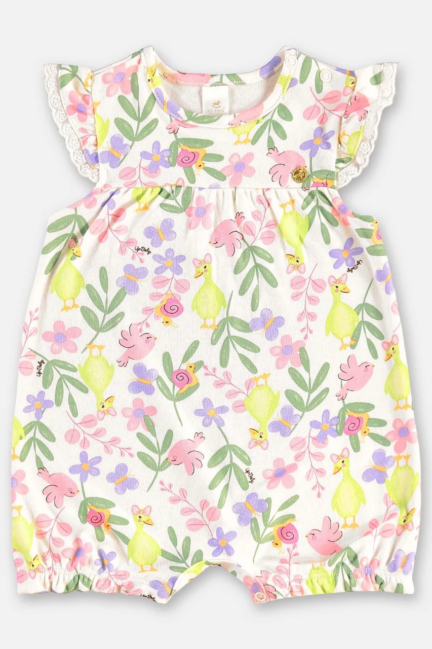 Macaquinho Bebê Menina em Suedine – Estampa Floral