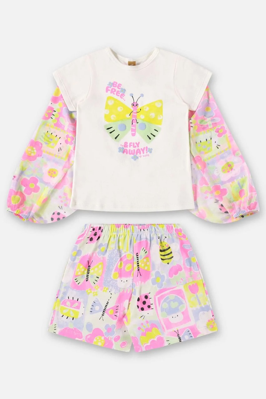 Pijama para meninas, composto por uma blusa e Short confeccionados em suedine, com